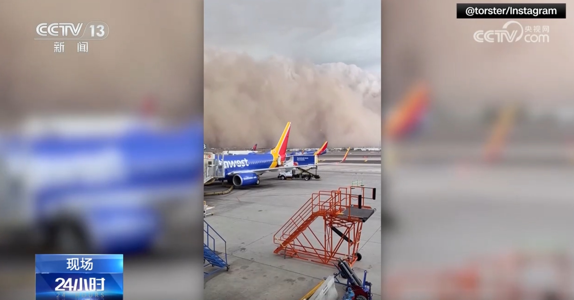 央視網(wǎng)消息:近日,沙塵暴席卷美國(guó)西南部。當(dāng)?shù)貢r(shí)間25日,在亞利桑那州首府菲尼克斯以及附近的吉爾伯特等地,狂風(fēng)卷起大片沙塵,甚至形成一堵“沙墻”,將整個(gè)城市籠罩。