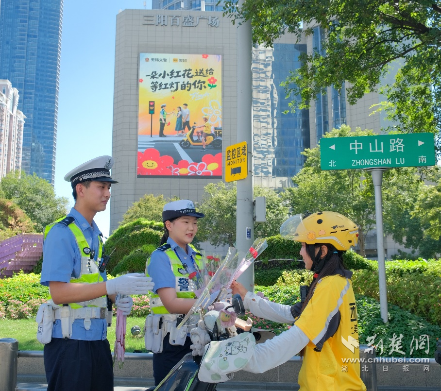 荊楚網(wǎng)(湖北日報(bào)網(wǎng))訊(通訊員小雨)8月29日七夕當(dāng)天,美團(tuán)在西寧、鄭州、蘭州、深圳、武漢等全國16座城市同步發(fā)起“送你一朵小紅花”交通安全倡導(dǎo)行動(dòng)。各城市交警在十字路口、斑馬線前為遵守交通規(guī)則的騎手和市民送上鮮花及反光貼紙,傳遞“安全出行”理念?;顒?dòng)現(xiàn)場,近萬人領(lǐng)取到倡導(dǎo)交通安全文明的“小紅花”。據(jù)了解,這是美團(tuán)在全國發(fā)起的騎手交通安全正向激勵(lì)系列活動(dòng)之一,旨在推動(dòng)騎手交通安全意識提升與權(quán)益保障的常態(tài)化。