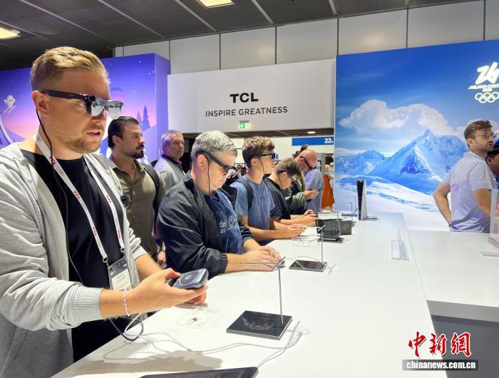 當(dāng)?shù)貢r(shí)間9月5日,2025年德國柏林國際消費(fèi)電子展(IFA)在柏林會展中心開幕。圖為觀眾在TCL展區(qū)體驗(yàn)雷鳥眼鏡。中新社記者 馬秀秀 攝