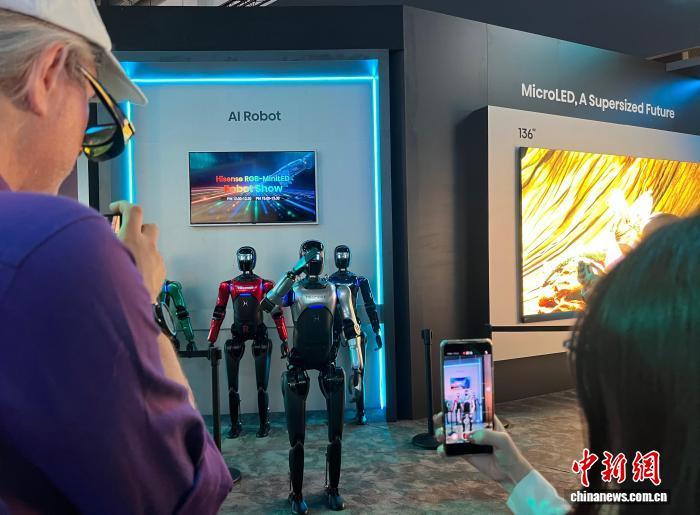 當(dāng)?shù)貢r(shí)間9月5日,2025年德國柏林國際消費(fèi)電子展(IFA)在柏林會展中心開幕。圖為海信正在研發(fā)的具身智能人形機(jī)器人引圍觀。中新社記者 馬秀秀 攝