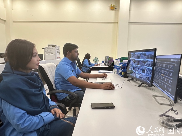 孟加拉國技術人員在達卡機場高架快速路控制中心工作。人民網記者 孫廣勇攝