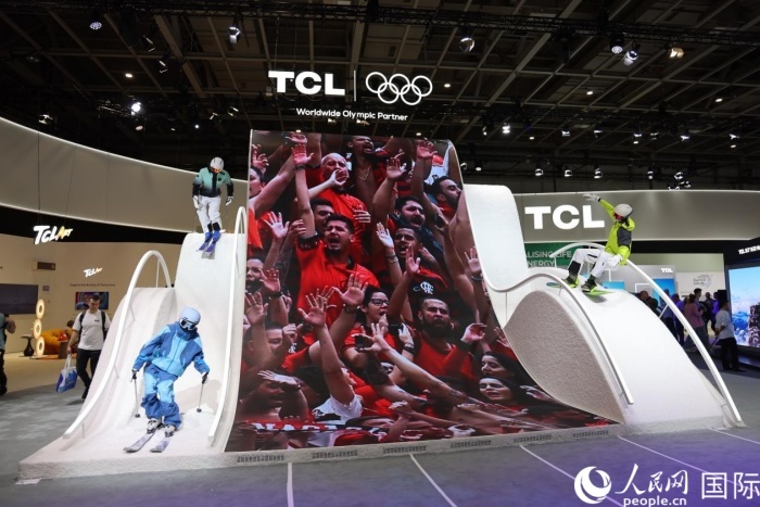 圖為TCL在柏林會(huì)展中心打造的冬奧主題展區(qū)。人民網(wǎng)記者 劉仲華攝