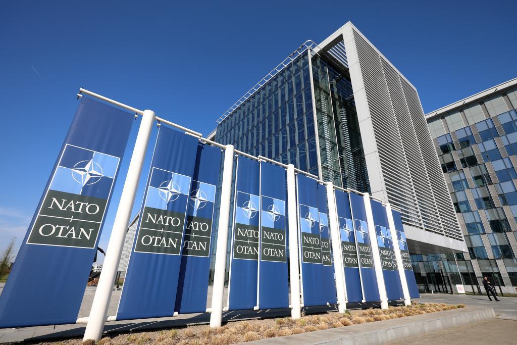 這是4月4日在比利時(shí)布魯塞爾拍攝的北約總部一角。新華社記者趙丁喆攝