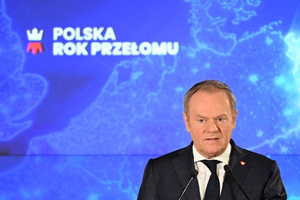 2月10日,波蘭總理圖斯克在首都華沙舉行的活動(dòng)上講話。新華社/法新