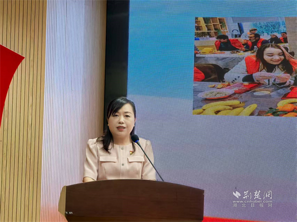 “全國(guó)民族團(tuán)結(jié)進(jìn)步模范個(gè)人”、武漢市武昌區(qū)紫陽(yáng)街道起義門社區(qū)黨委書記魏玉萍做《觀禮凝聚力量 治理譜寫新篇》主題宣講,通過(guò)生動(dòng)講述所見所聞,分享其作為親歷者參加“九三閱兵”的珍貴經(jīng)歷與內(nèi)心感悟,抒發(fā)對(duì)國(guó)家繁榮昌盛的自豪之情。“這份榮耀不僅屬于我個(gè)人,也屬于所有團(tuán)結(jié)拼搏的紫陽(yáng)人,屬于每一位同心同德、團(tuán)結(jié)奮進(jìn)的各族群眾?!蔽河衿紕?dòng)情的講述配上閱兵式日當(dāng)天的圖片和視頻讓臺(tái)下的聽眾身臨其境,現(xiàn)場(chǎng)不時(shí)響起熱烈的掌聲。