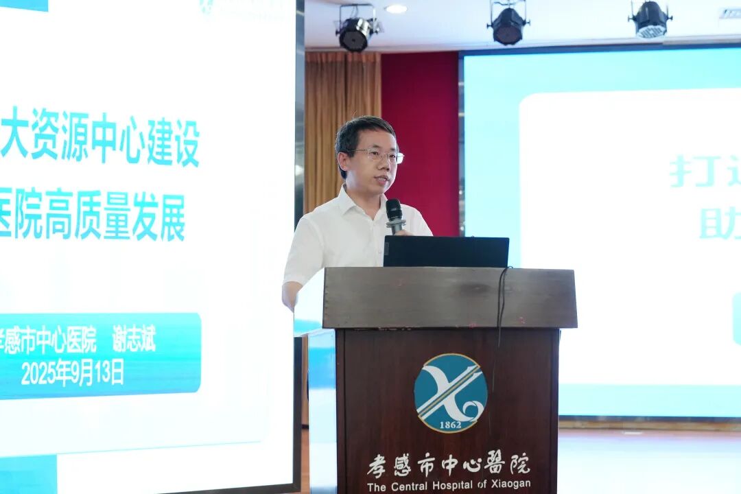 報告環(huán)節(jié)由市中心醫(yī)院副院長胡超華主持,聚焦政策解讀與實踐分享。市醫(yī)療保障局黨組成員、副局長魏其義,市衛(wèi)生健康委黨組成員、副主任胡偉清,市中心醫(yī)院院長謝志斌分別就孝感市落實三明醫(yī)改相關(guān)醫(yī)保政策、孝感市深化分級診療的生動實踐和孝感市中心醫(yī)院五大資源中心創(chuàng)建等內(nèi)容進(jìn)行了介紹。孝感市分子診斷中心、孝感市腫瘤臨床中心、孝感市公共衛(wèi)生臨床中心、孝感市數(shù)智化病理診斷中心的相關(guān)負(fù)責(zé)人依次在會上就各中心建設(shè)情況進(jìn)行了匯報。
