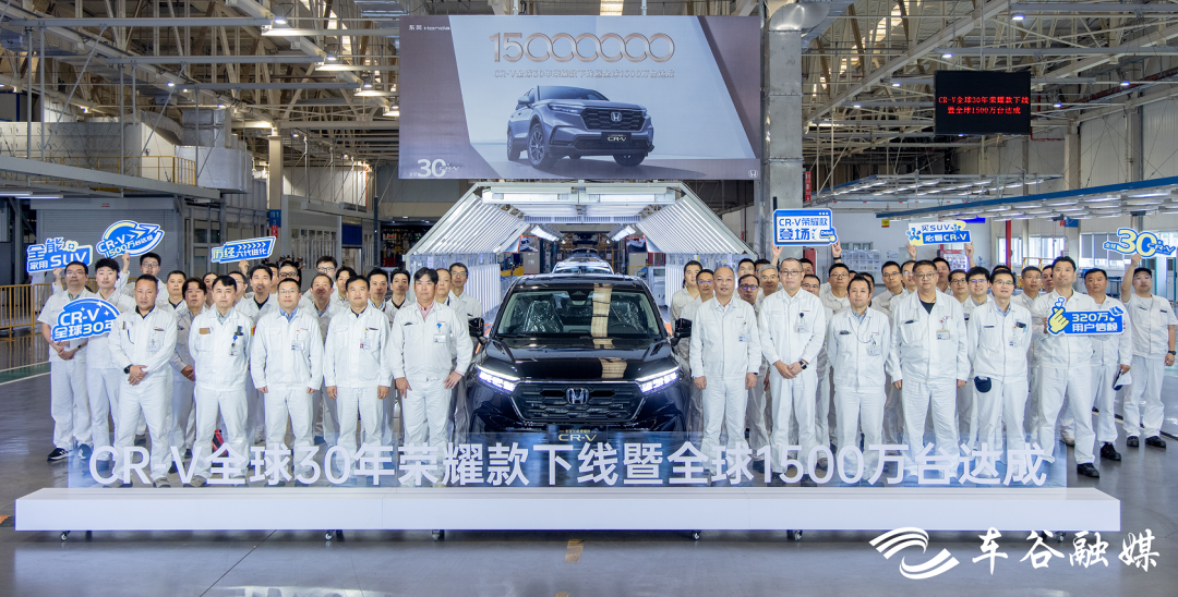 9月15日11時(shí)40許,在位于武漢經(jīng)開區(qū)的東風(fēng)本田第三工廠總裝車間,一輛東風(fēng)本田CR-V全球30年榮耀款緩緩駛下生產(chǎn)線。同日,CR-V全球累計(jì)銷量突破1500萬臺(tái),成為全球最受歡迎的家用SUV之一。
