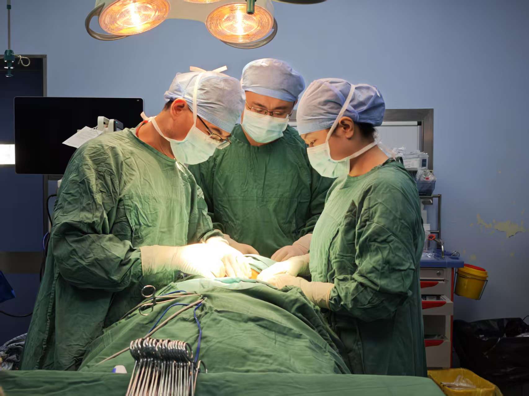針對(duì)患者危急情況,甲狀腺乳腺外科迅速組建由沈浩元副主任醫(yī)師,楊青青主治醫(yī)師、王放明住院醫(yī)師的手術(shù)診療團(tuán)隊(duì)。經(jīng)過4小時(shí)精細(xì)操作,團(tuán)隊(duì)完整切除雙側(cè)甲狀腺及腫瘤,并完成中央?yún)^(qū)與頸側(cè)區(qū)淋巴結(jié)根治性清掃,成功保留了對(duì)發(fā)聲功能及血液循環(huán)至關(guān)重要的喉返神經(jīng)與頸內(nèi)靜脈。目前患者恢復(fù)順利,已轉(zhuǎn)危為安,診療效果得到患者及家屬認(rèn)可。