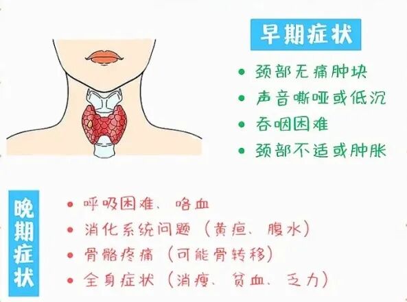 甲狀腺癌并非都是“懶癌”,雖然大多數(shù)甲狀腺癌(如分化型甲狀腺癌)預(yù)后良好,但仍有部分甲狀腺癌具有較強(qiáng)的侵襲性,會(huì)快速進(jìn)展并出現(xiàn)淋巴結(jié)轉(zhuǎn)移、局部侵犯等情況。若未及時(shí)手術(shù),腫瘤將進(jìn)一步侵犯周圍重要結(jié)構(gòu),可能導(dǎo)致聲音嘶啞、呼吸困難,甚至出現(xiàn)遠(yuǎn)處轉(zhuǎn)移,嚴(yán)重威脅生命安全。