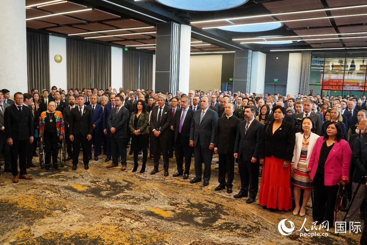 納瓦羅代表阿根廷政府致辭,祝賀中華人民共和國(guó)成立76周年,感謝中國(guó)對(duì)阿根廷政治、經(jīng)濟(jì)、金融、主權(quán)等各領(lǐng)域支持,重申堅(jiān)持一個(gè)中國(guó)原則,強(qiáng)調(diào)雙方要不斷深化發(fā)展阿中全面戰(zhàn)略伙伴關(guān)系。
