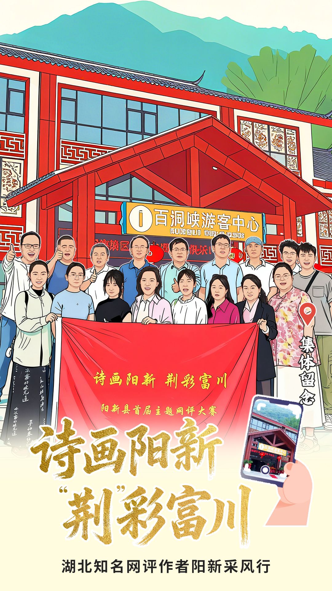 湖北骨干網(wǎng)評(píng)作者調(diào)研陽新文旅產(chǎn)業(yè)后集體留影。