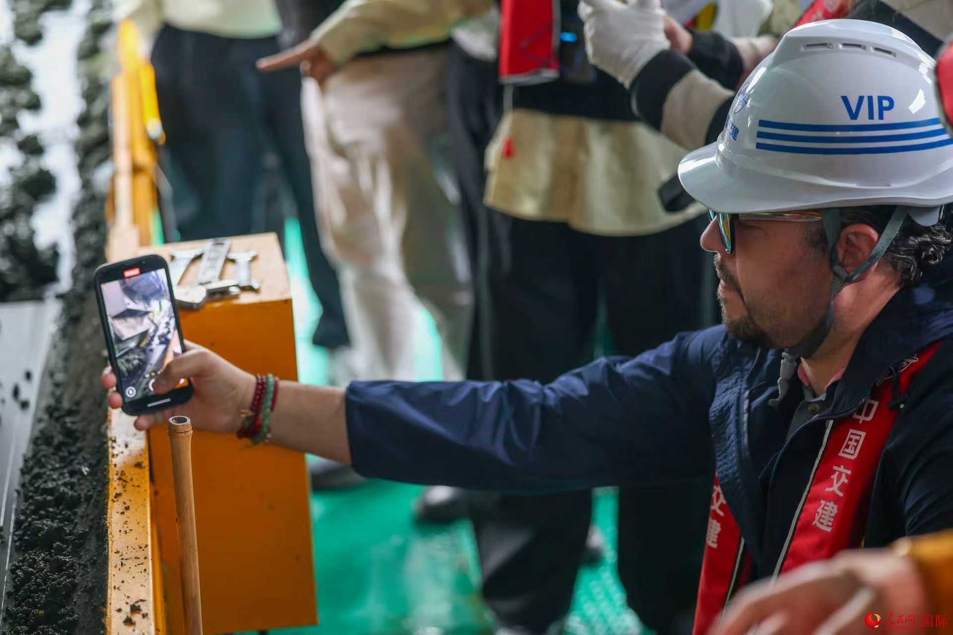 2025“一帶一路”媒體合作論壇中外媒體聯(lián)合采訪團的外媒記者正在拍攝“藻水共治”一體化平臺過濾產(chǎn)生的藻泥。人民網(wǎng)記者 張武軍攝