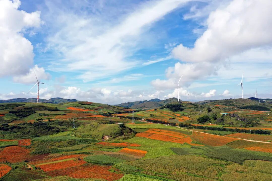 高原特色文旅與能源產(chǎn)業(yè)相互促進,為縣域經(jīng)濟帶來新鮮活力。該基地建設(shè)堅持“在開發(fā)中保護、在保護中開發(fā)”,將綠色發(fā)展理念貫穿全生命周期。在風電場間隙地,種植耐陰中藥材、萬壽菊經(jīng)濟作物;在風機機位上,繪有壯族、苗族、彝族等民族圖案;建設(shè)觀景平臺、徒步棧道等設(shè)施,方便游人往來、觀景?!安世L風機+高山草場+云海觀光”生態(tài)旅游線路上,扇葉、花海相映成趣,“上風下農(nóng)”相得益彰,帶動周邊民宿、餐飲收入增長。創(chuàng)新“新能源+”融合發(fā)展模式,一體化推進生態(tài)修復、立體經(jīng)濟與清潔能源協(xié)同發(fā)展,繪就農(nóng)、工、旅“良好互動”的美麗畫卷。