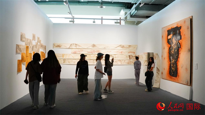 該展廳呈現(xiàn)意大利藝術家馬泰奧、羅馬尼亞藝術家安德烈婭、加拿大藝術家米歇爾、剛果(金)藝術家卡拉瑪與中國藝術家陳明坤作品。人民網(wǎng) 嚴小晶攝