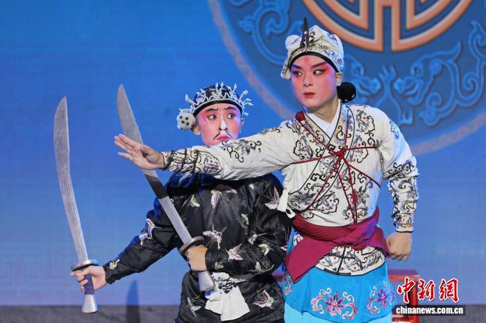 9月23日晚,浙江婺劇團(tuán)雅加達(dá)專(zhuān)場(chǎng)上演。圖為折子戲《三岔口》。中新社記者 李志全 攝