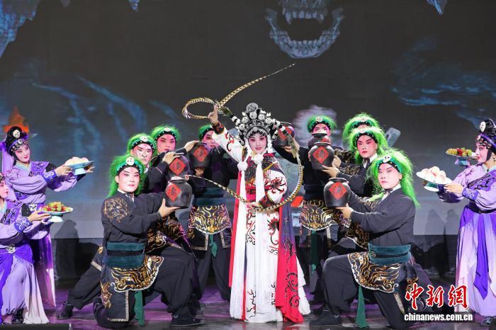 9月23日晚,浙江婺劇團(tuán)雅加達(dá)專(zhuān)場(chǎng)上演。圖為經(jīng)典大戲《三打白骨精》。中新社記者 李志全 攝