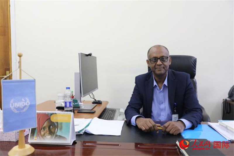 圖為聯(lián)合國工發(fā)組織埃塞區(qū)域辦事處國家項目官員阿塞吉德。人民網(wǎng)記者 沈小曉攝