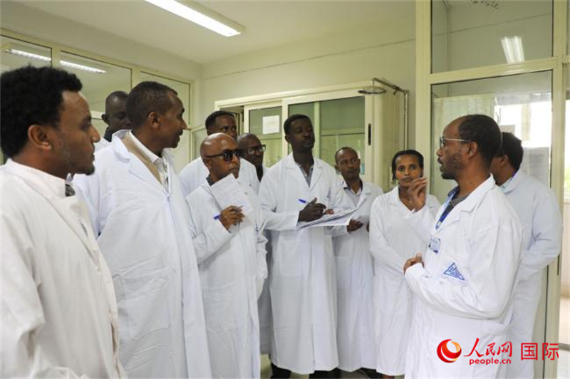 當記者在檢測中心采訪時,正好碰上了一次項目培訓,培訓人員來自埃塞俄比亞國內(nèi)各省和地區(qū)?,F(xiàn)場培訓氛圍非常好,講師和學員之間充滿了問答和高度參與的互動,學員們把講師圍了個里三層外三層,積極地提問。