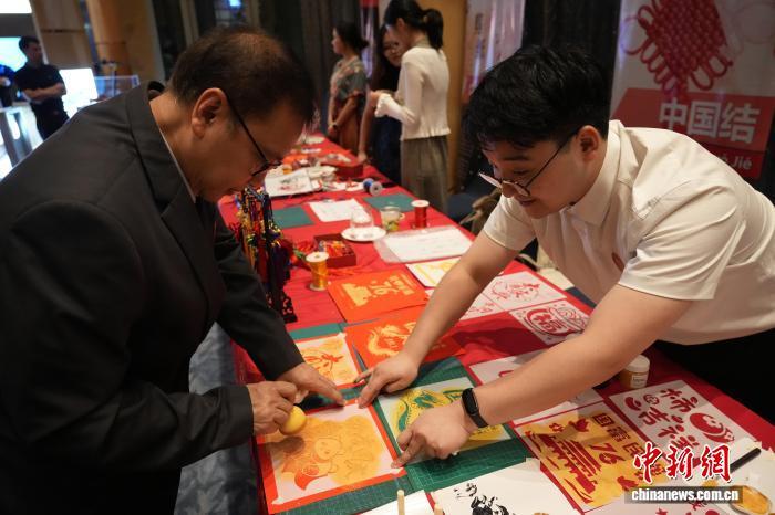 圖為嘉賓在中國(guó)文化展臺(tái)體驗(yàn)拓印。記者 張興龍 攝