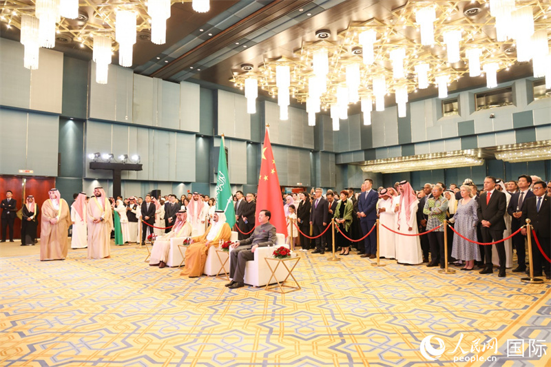 人民網(wǎng)利雅得9月26日電(記者任皓宇)9月25日,中國駐沙特使館舉行招待會(huì),熱烈慶祝中華人民共和國成立76周年和中沙建交35周年。沙特利雅得地區(qū)副埃米爾穆罕默德·本·阿卜杜拉赫曼親王、沙內(nèi)政部副大臣阿卜杜勒阿齊茲·阿亞夫親王、沙外交部次大臣賽馬里以及沙政府有關(guān)部門和軍隊(duì)高級官員,各國駐沙使節(jié)和伊斯蘭合作組織代表,沙各界友好人士,在沙中資機(jī)構(gòu)、教師留學(xué)生、華僑華人代表約600人出席。