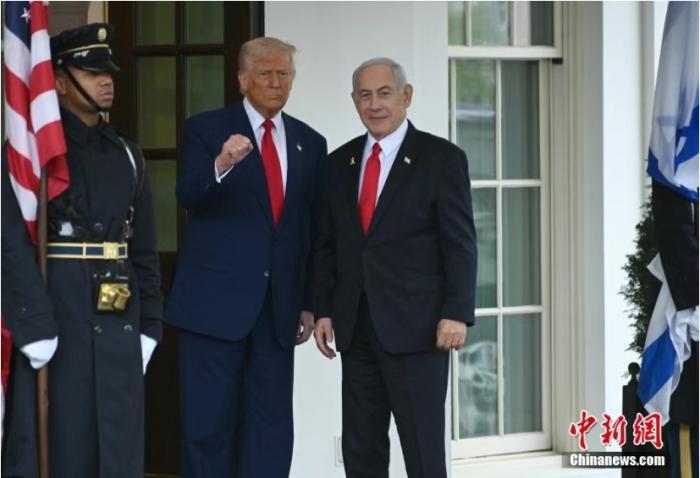 資料圖:當(dāng)?shù)貢r(shí)間2025年4月7日,美國(guó)總統(tǒng)特朗普與以色列總理內(nèi)塔尼亞胡在華盛頓白宮會(huì)晤。中新社記者 陳孟統(tǒng) 攝