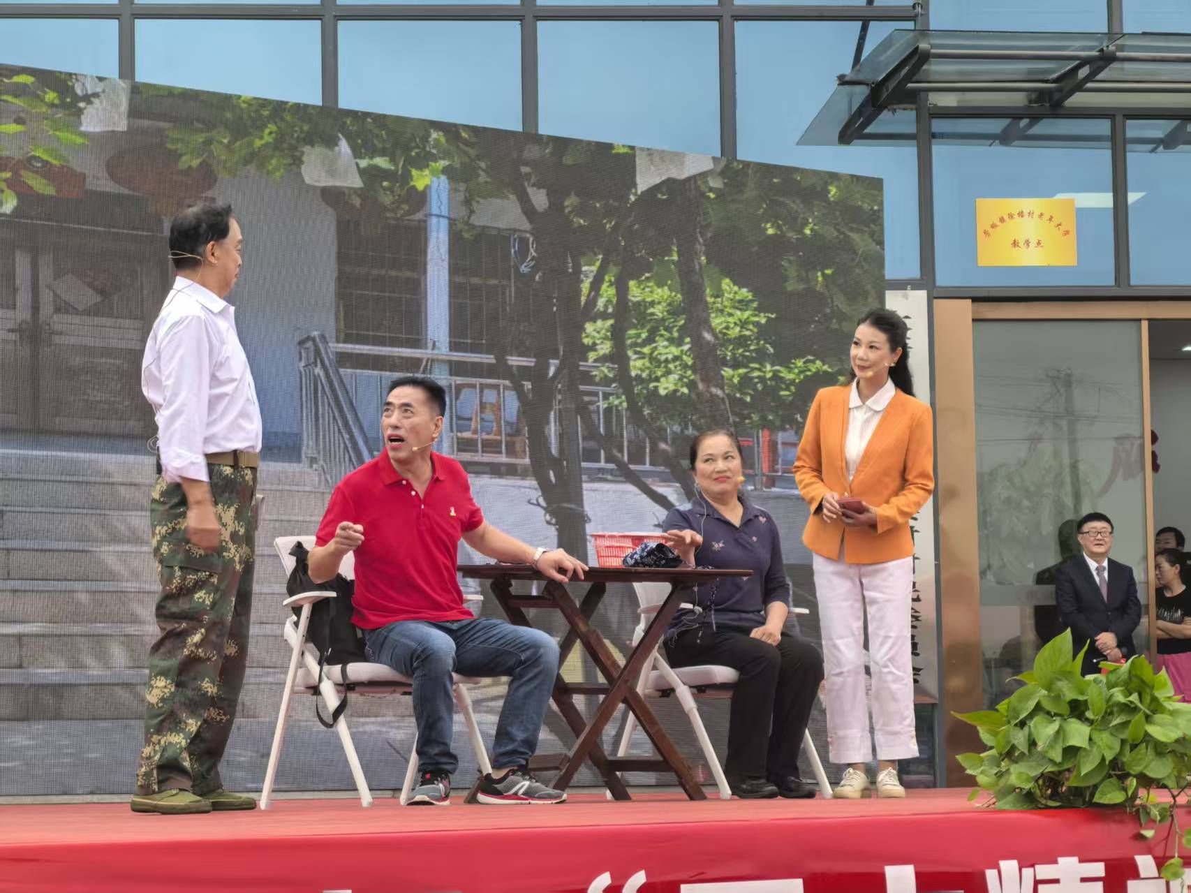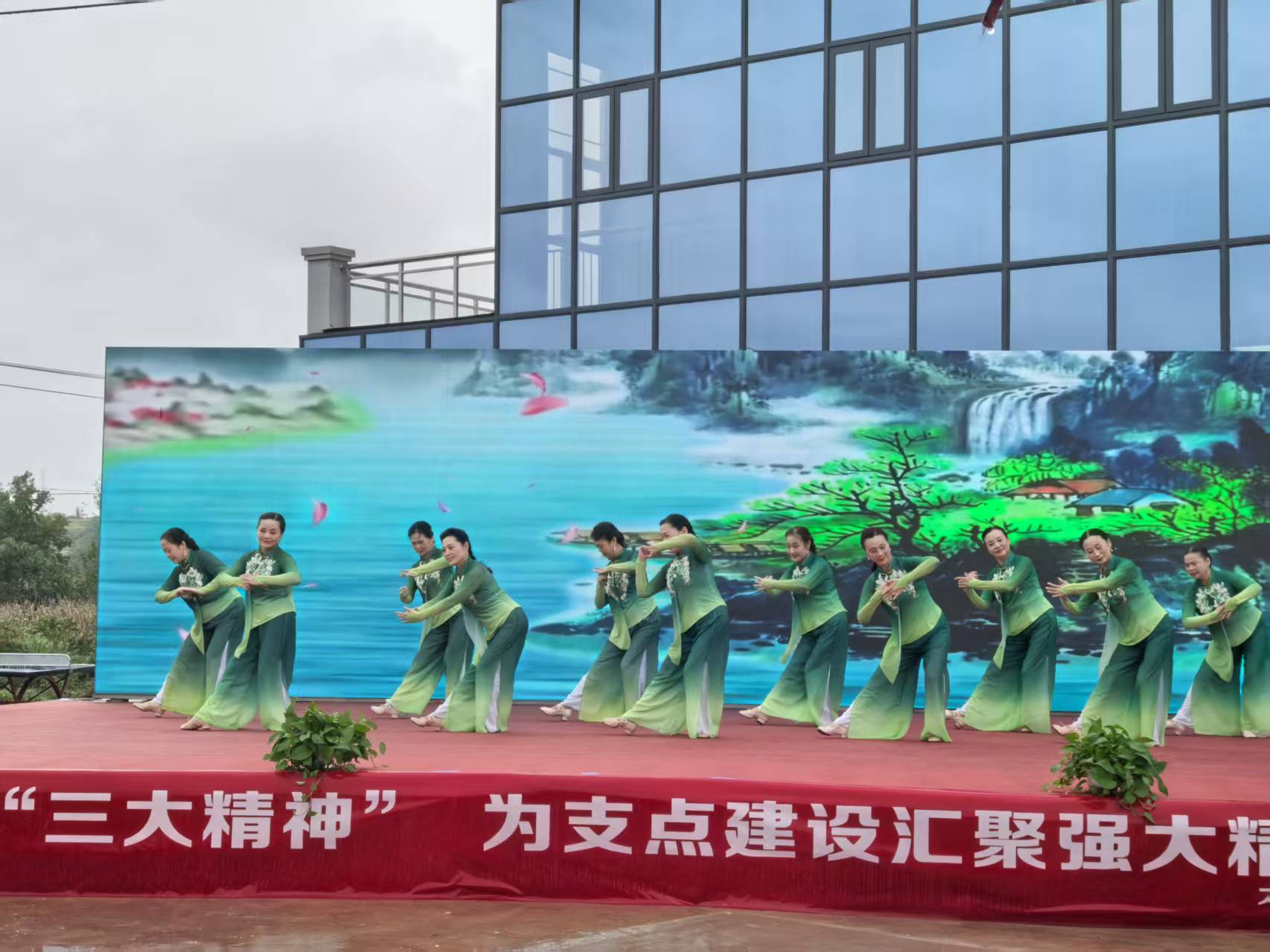 活動當(dāng)天,在在嶄新的徐樓村黨群服務(wù)中心廣場上,盡管天降小雨,周邊村民群眾的歡聲笑語不絕于耳。文藝匯演開始后,形式多樣的歌聲舞蹈節(jié)目輪番上演:韻味十足的黃梅戲曲聯(lián)唱,展現(xiàn)了國粹藝術(shù)的永恒魅力;靈動優(yōu)美的舞蹈《春不晚》舞出了新時代農(nóng)村的勃勃生機(jī);四重唱《長江之歌》旋律悠揚,令人陶醉。更有精心編排的手拍鼓、詼諧幽默的三句半等本土節(jié)目,用鄉(xiāng)音鄉(xiāng)情講述鄉(xiāng)村振興故事,引得臺下掌聲、喝彩聲此起彼伏。