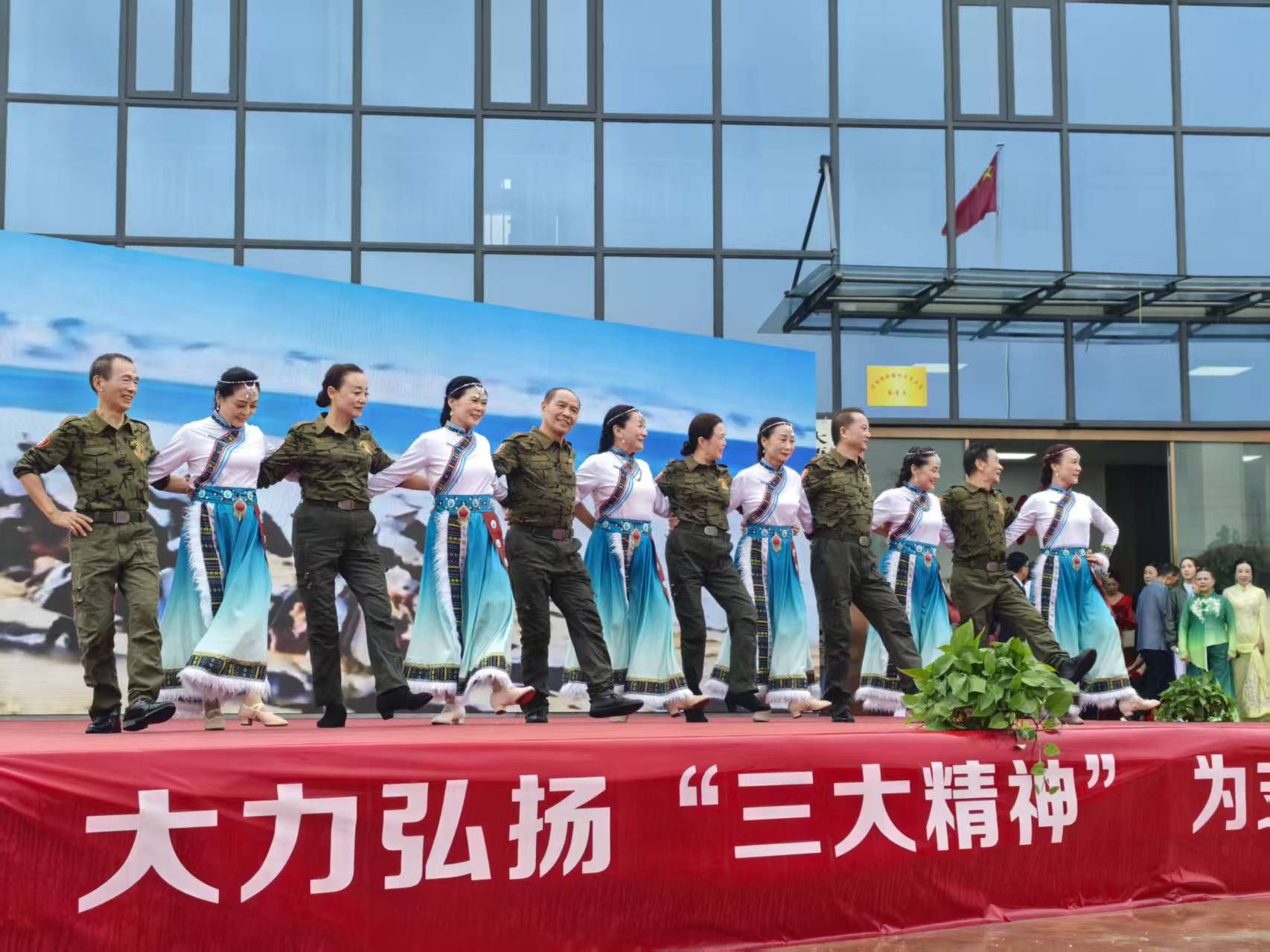 省老年大學(xué)藝術(shù)團(tuán)的團(tuán)員們用飽滿的熱情和精湛的表演,充分展現(xiàn)了新時代老年人老有所為、老有所樂的健康風(fēng)采和尊老敬老、愛國愛鄉(xiāng)的傳統(tǒng)美德。由于天氣原因,新時代文明實踐站的志愿者們?yōu)檠莩鋈藛T和觀演群眾搭建雨棚、準(zhǔn)備雨傘,泡好姜茶,現(xiàn)場一位年過七旬的徐大爺激動地說:“省里的藝術(shù)家能來到我們家門口表演,真是好啊,這些年輕人也熱心,心里特別暖和!”