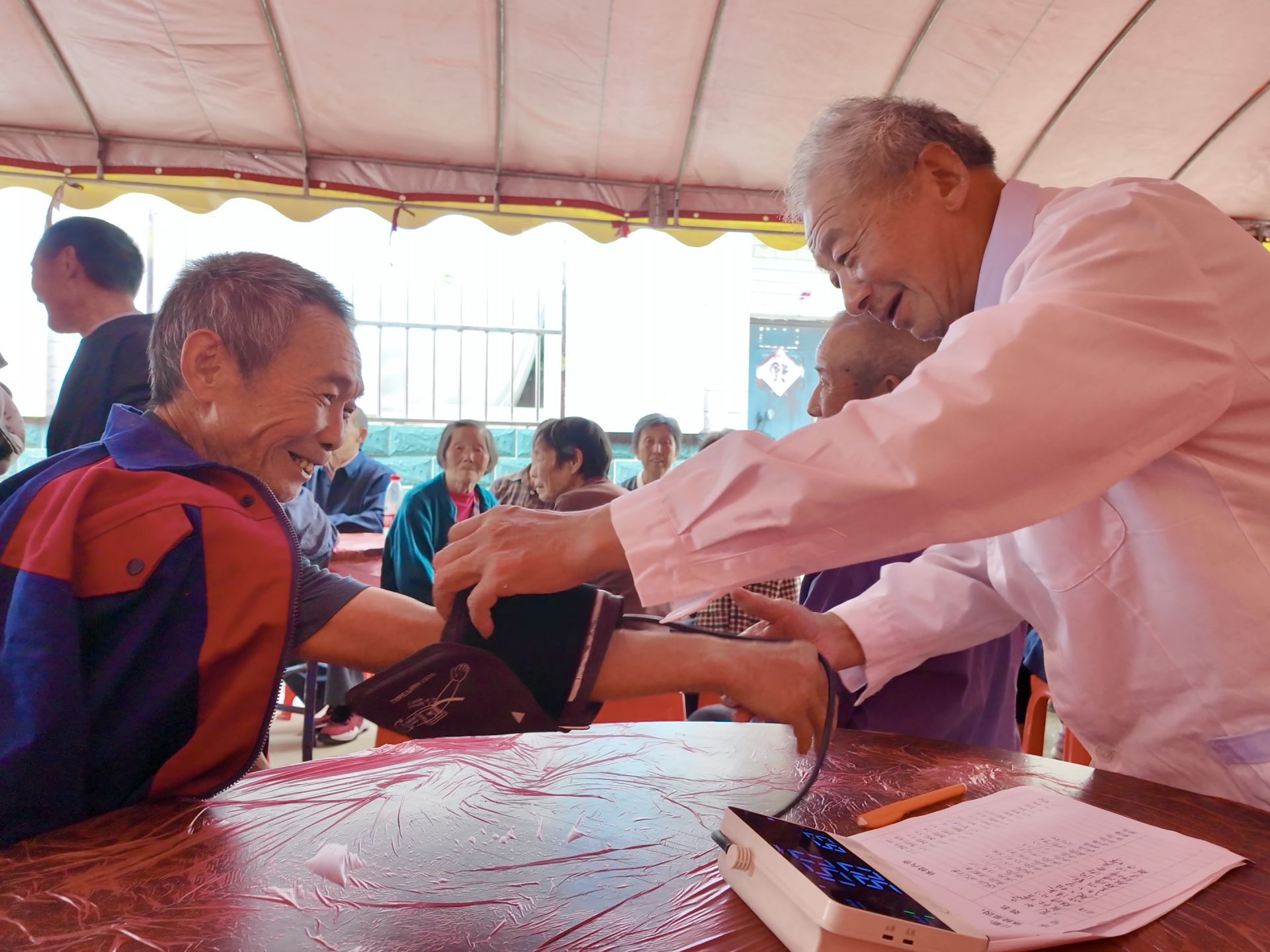 清晨時分,北河村村醫(yī)就在幸福食堂支起“愛心診臺”,為陸續(xù)前來的老人們提供免費血壓測量等基礎(chǔ)健康檢查。醫(yī)護(hù)人員一邊細(xì)心檢查,一邊耐心叮囑日常注意事項,用貼心服務(wù)守護(hù)老人們的健康。