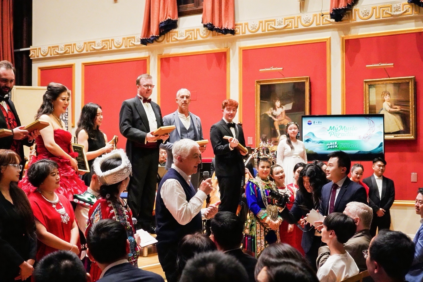 本次音樂(lè)會(huì)還特設(shè)榮譽(yù)授予環(huán)節(jié),為貴州文演集團(tuán)20名音樂(lè)家及6名歐洲音樂(lè)家頒發(fā)“中歐音樂(lè)大使”稱號(hào),以鼓勵(lì)他們履行“以音樂(lè)為橋梁、促進(jìn)人文交流”的承諾。 首次登上英國(guó)舞臺(tái)的貴州音樂(lè)家楊勝東難掩激動(dòng):“第二次搭檔我們更顯默契,中西方音樂(lè)碰撞出了新的韻味?!?/p>