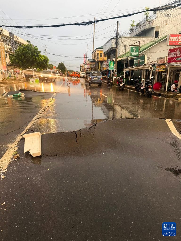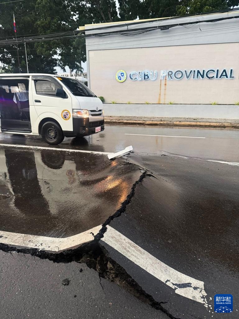 這是10月1日在菲律賓宿務(wù)省拍攝的在地震中損壞的道路。新華社發(fā)(宿務(wù)省地方政府供圖)