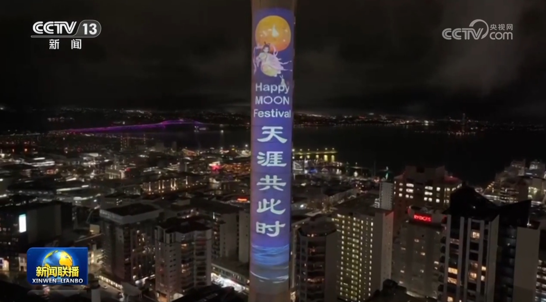 新西蘭奧克蘭日前首次舉行中秋投影活動,以傳統(tǒng)水墨為靈感,嫦娥、玉兔、月餅等中秋元素投射在奧克蘭標(biāo)志性建筑天空塔上,讓當(dāng)?shù)孛癖姼惺苤腥A文化的魅力。