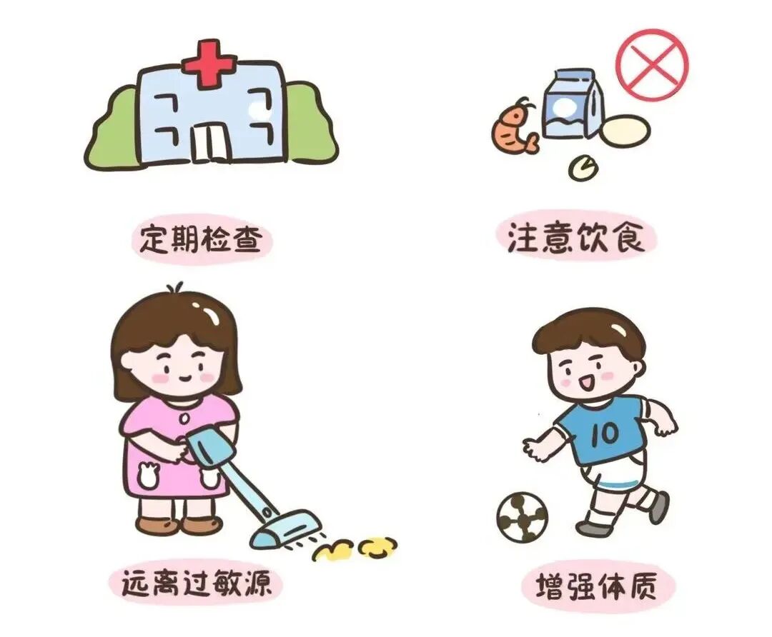 遠(yuǎn)離煙草、花粉、寵物毛發(fā)、冷空氣等已知過敏原,積極預(yù)防呼吸道感染。