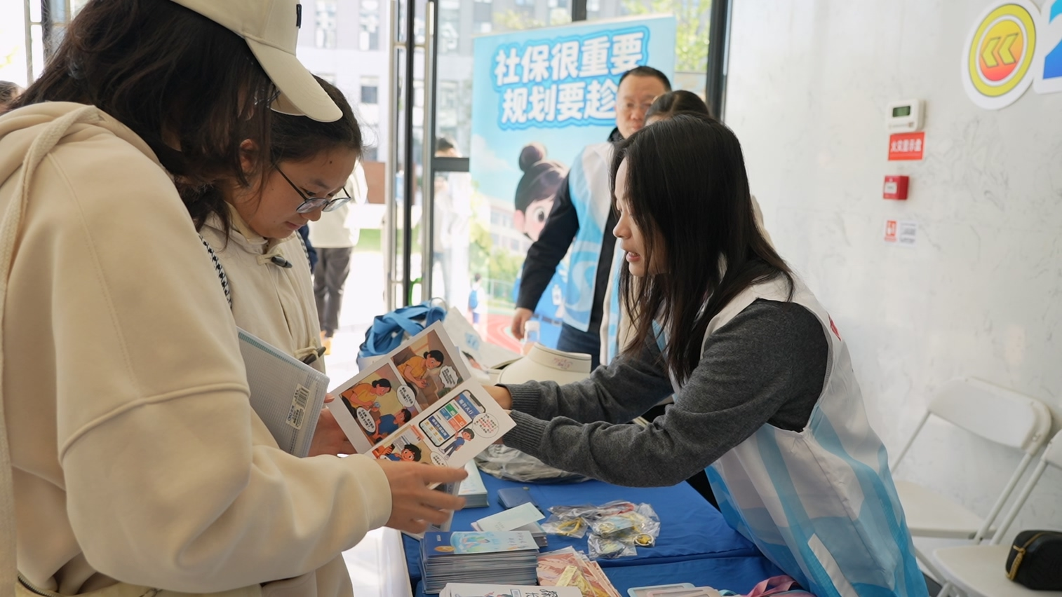 省社保中心工作人員為大學生們提供社保規(guī)劃服務