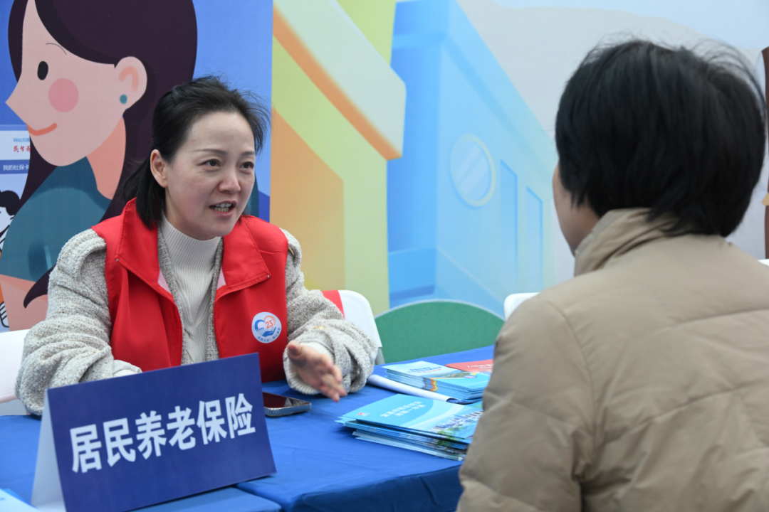 在宜昌市伍家崗區(qū)三峽環(huán)球港廣場(chǎng),群眾向工作人員了解居保提檔繳費(fèi)。
