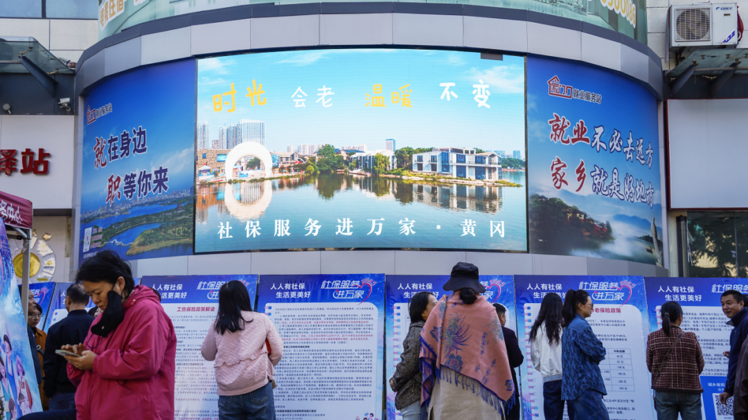 黃岡市“社保服務(wù)進(jìn)萬家”活動(dòng)現(xiàn)場(chǎng),群眾在社保政策宣傳展板前駐足觀看。
