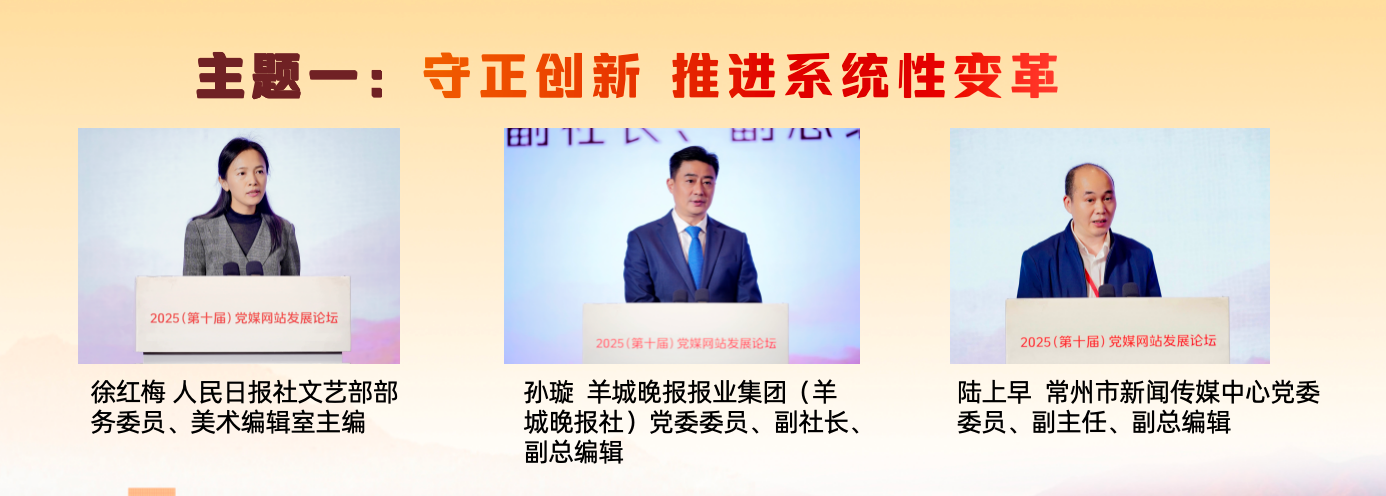 在“守正創(chuàng)新 推進系統(tǒng)性變革”主題研討環(huán)節(jié),人民日報社文藝部部務委員、美術編輯室主編徐紅梅,羊城晚報報業(yè)集團(羊城晚報社)黨委委員、副社長、副總編輯孫璇,常州市新聞傳媒中心黨委委員、副主任、副總編輯陸上早分別作主旨發(fā)言,介紹了各自領域推進系統(tǒng)性變革、發(fā)展新時代中國特色社會主義文化的實踐與探索。徐紅梅表示,“每日讀畫”采取“AI+美術”“微視頻+夜讀”的形式,堅持“讀準、讀細、讀新、讀美”,讓AI成為深入畫境、開啟古今對話的共創(chuàng)者,以動態(tài)轉(zhuǎn)譯、意境擴展、流程再造、視聽融合開發(fā)美術融媒的敘事潛能,深入挖掘中華文明賡續(xù)傳承的基因密碼,成為探索主流媒體系統(tǒng)性變革的微觀樣本。孫璇表示,羊城晚報全面啟動系統(tǒng)性變革,以做強媒體、文化、數(shù)據(jù)、產(chǎn)業(yè)四個戰(zhàn)略板塊為重點,把“技術賦能”嵌入系統(tǒng)性變革各關鍵板塊,積極增強文化傳播、促進文化交流和繁榮文化生產(chǎn)。陸上早表示,常州借“蘇超”東風,走出城市轉(zhuǎn)型與能級躍升之路。改革的推進需聚焦六大方向:組織體系化,內(nèi)容精品化,傳播移動化,技術現(xiàn)代化,分配績效化,干部年輕化。