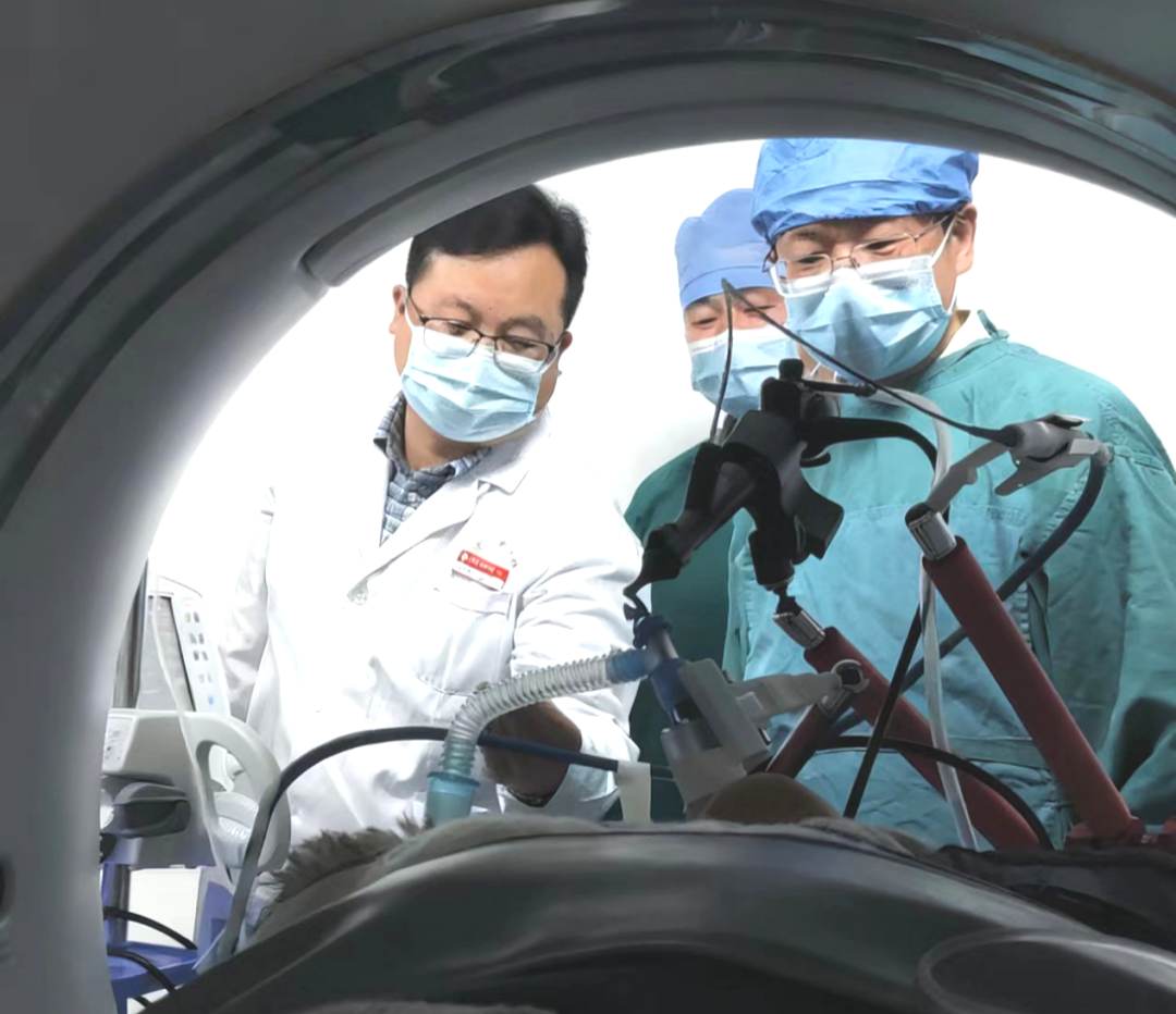 針對兩名患者的復(fù)雜病情,醫(yī)院啟動MDT多學(xué)科聯(lián)合診療機(jī)制。放射影像科、核醫(yī)學(xué)科、疼痛科、胸外科、腫瘤科等多學(xué)科專家共同研討,呼吸與危重癥醫(yī)學(xué)科劉鈞副主任醫(yī)師、邱琦主治醫(yī)師等反復(fù)評估患者病情,經(jīng)與家屬充分溝通后,最終決定采用AI+AR光學(xué)導(dǎo)航支氣管鏡聯(lián)合徑向超聲引導(dǎo)下的冷凍消融術(shù),在精準(zhǔn)作用于病灶的同時,最大程度保護(hù)患者肺功能。