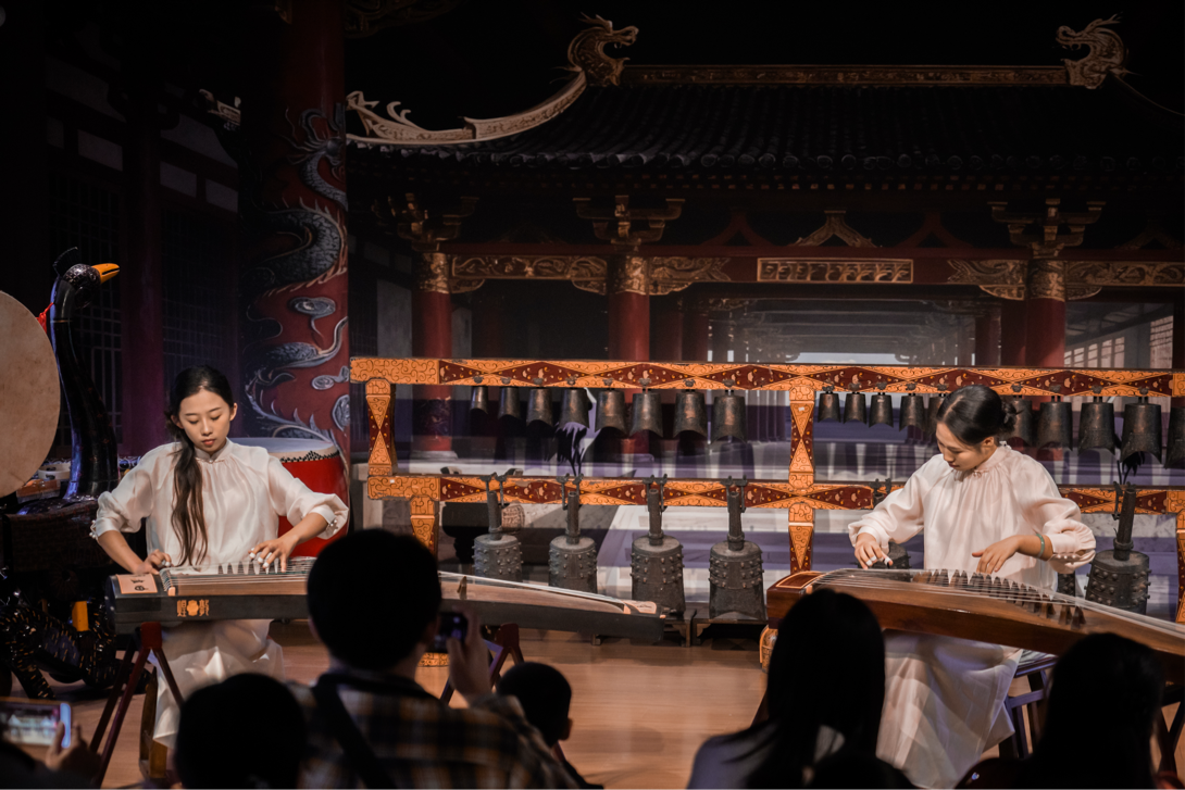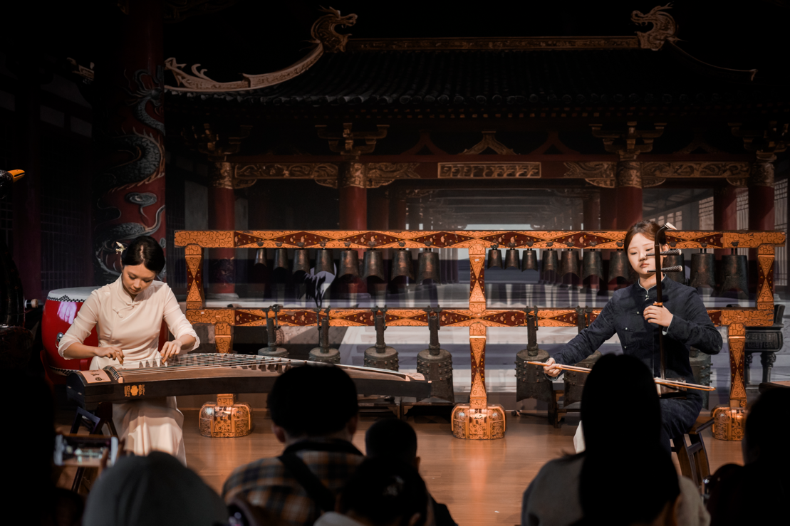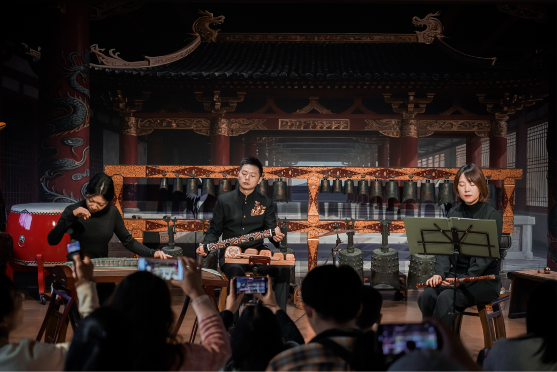 荊州博物館以“讓文物從展柜走向舞臺(tái)”為底色:編鐘廳的古雅空間成為演出主場(chǎng),戰(zhàn)國(guó)漆器展柜與《紀(jì)南城·砥礪》的編磬聲共振,曾侯乙墓出土的羽調(diào)式音階融入樂(lè)曲創(chuàng)作,館內(nèi)藏有的楚文化脈絡(luò)更成了音樂(lè)會(huì)“楚墟新聲”板塊的核心靈感源。從章華臺(tái)到銅綠山,荊州博物館的考古資源,讓沉睡的遺址變成了旋律里的“楚魂載體”。