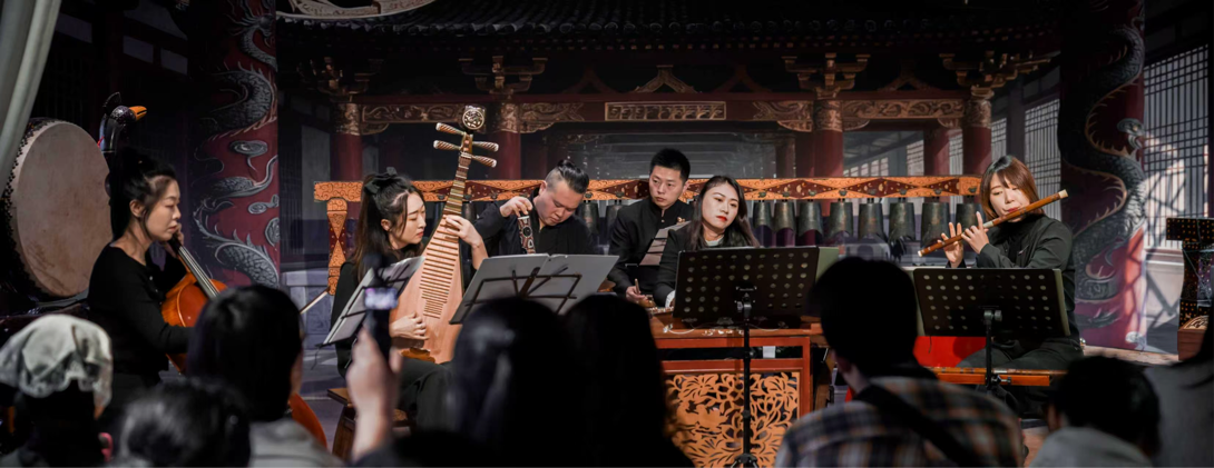 ? 荏苒哲思:陳銀、周思毅作曲,慧箏樂(lè)團(tuán)及陳銀、杜夢(mèng)、王遠(yuǎn)昭等演繹《小寒》《問(wèn)道》《遇·子期》,以“三曲述三客”串聯(lián)荊楚人文意趣。