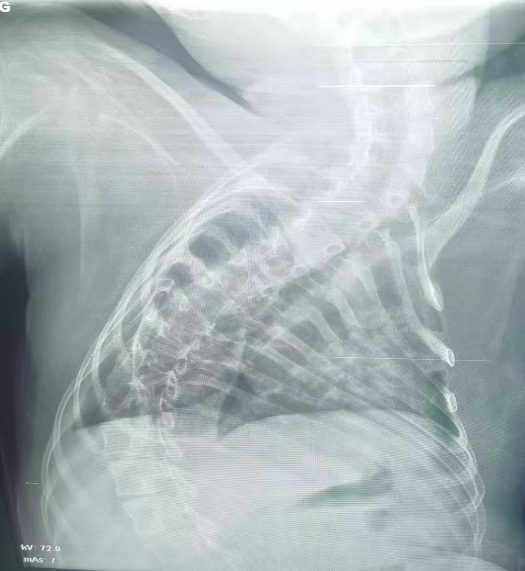 該患兒因患脊髓性肌萎縮癥長期臥床,呼吸肌已嚴重無力,自主呼吸微弱且?guī)缀鯁适Э人耘盘的芰?,此次并發(fā)支氣管肺炎后,肺部感染迅速加重,生命已然懸于一線。更棘手的是,嚴重的脊柱側彎使患兒胸廓畸形、氣道解剖結構明顯移位,常規(guī)纖支鏡進鏡路徑完全失效,扭曲狹窄的氣道如同縱橫交錯的“迷宮”,每一步操作都必須精準到毫米級別。