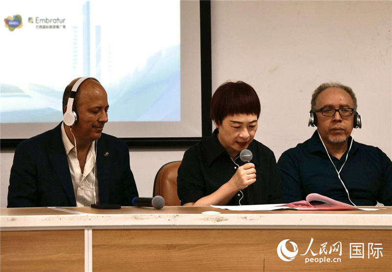 巴西國際旅游推廣局國際市場負責人安德烈·內(nèi)托發(fā)表致辭。人民網(wǎng)記者 宋亦然攝