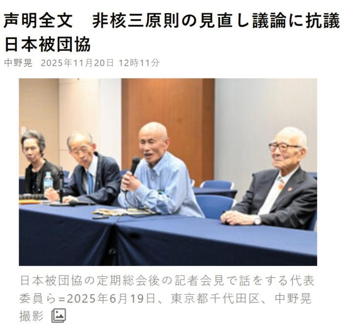 中新網(wǎng)11月20日電 據(jù)日本《朝日新聞》報道,當(dāng)?shù)貢r間20日,日本原子彈氫彈爆炸受害者團(tuán)體協(xié)議會就日本首相高市早苗考慮修改“無核三原則”一事發(fā)表致高市的聲明,稱“這將顛覆迄今為止的政府見解,強(qiáng)烈抗議開啟修改‘三原則’的討論”。