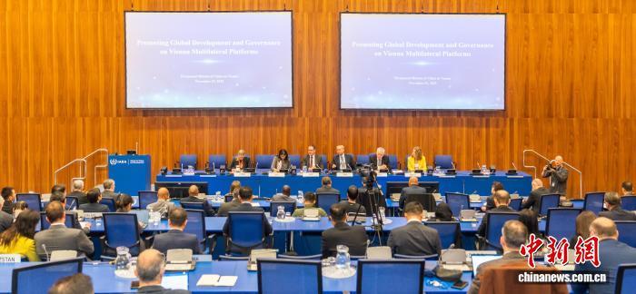 當(dāng)?shù)貢r(shí)間11月19日,中國常駐維也納代表團(tuán)在維也納聯(lián)合國總部舉辦全球發(fā)展倡議和全球治理倡議主題研討會(huì)。圖為會(huì)議現(xiàn)場。(中國常駐維也納代表團(tuán)供圖)