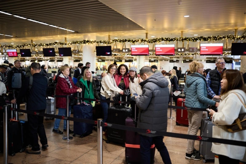 圖為布魯塞爾—重慶首航辦理值機手續(xù)的乘客。海南航空供圖