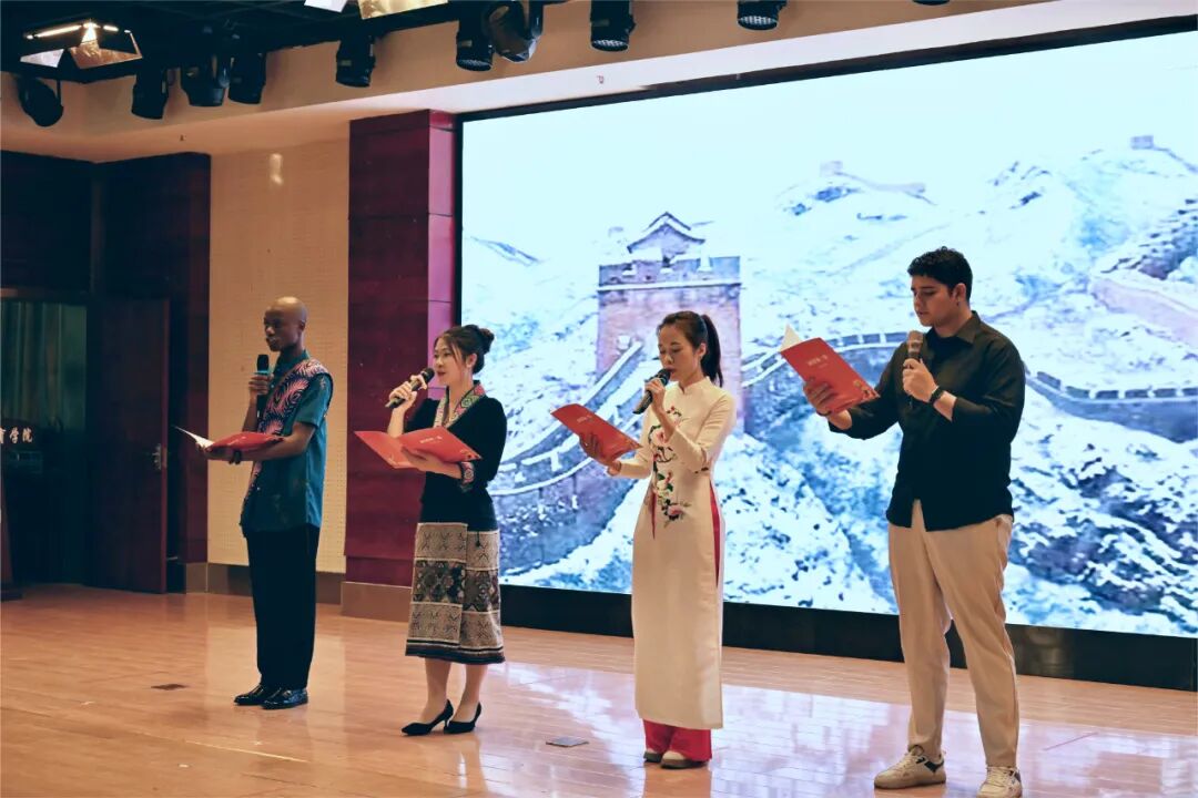 活動(dòng)在武漢大學(xué)留學(xué)生代表朗誦《沁園春·雪》中走向尾聲,他們用標(biāo)準(zhǔn)而富有感情的中文,表達(dá)了對(duì)中國(guó)革命精神的敬意以及對(duì)中華優(yōu)秀傳統(tǒng)文化的熱愛(ài),生動(dòng)體現(xiàn)了“各美其美,美美與共”的文明交融理念。