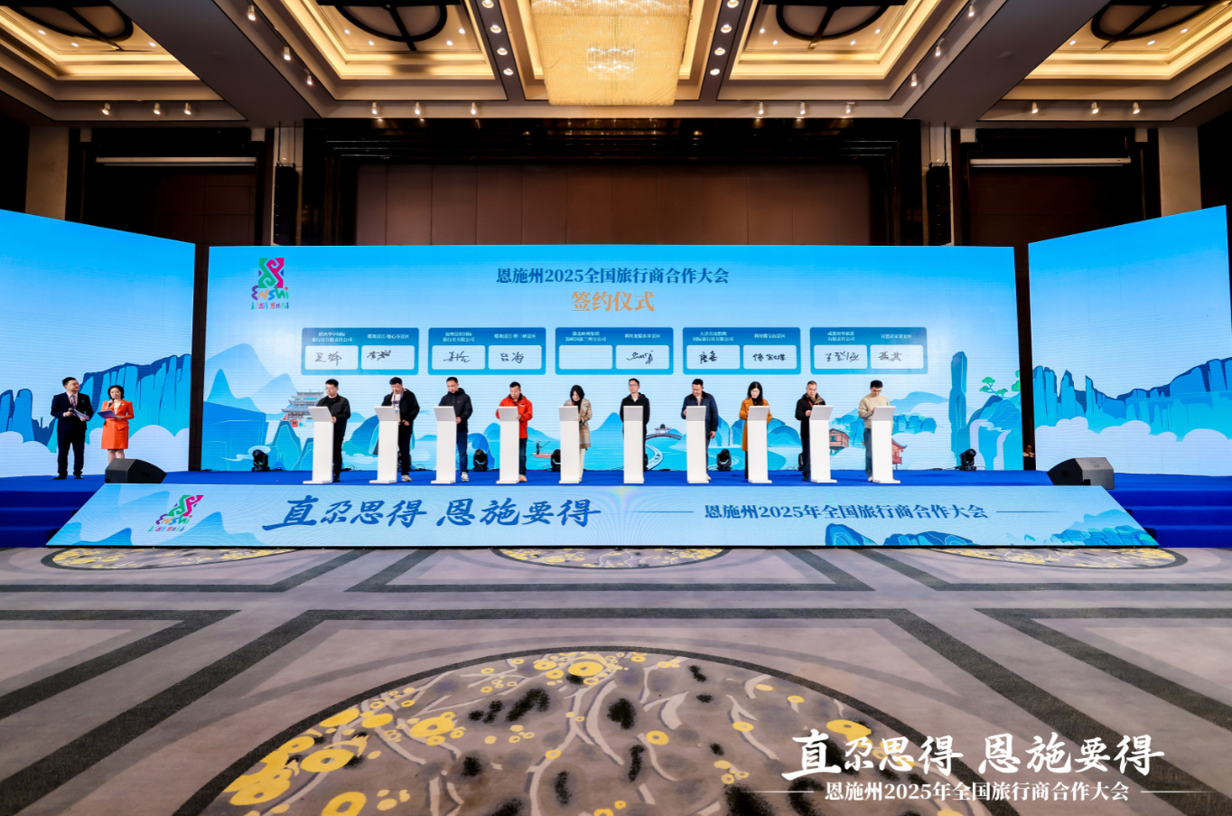 本次會上,現(xiàn)場達(dá)成戰(zhàn)略合作項目百余個,覆蓋景區(qū)聯(lián)票、旅游專線、酒店住宿、交通接駁等多個領(lǐng)域。來自內(nèi)蒙古、上海、青海等地的旅行商與恩施地接旅行社簽署了深度合作協(xié)議,預(yù)計2026年將為恩施輸送客源超百萬人次。與此同時,3000余塊恩施旅游電梯廣告覆蓋武漢三鎮(zhèn),“直尕思得 恩施要得”形象宣傳亮相江城夜景燈光秀。