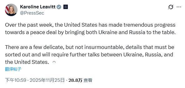 △美國白宮新聞秘書萊維特25日發(fā)布聲明稱:“還有一些棘手但并非不可克服的關(guān)鍵細節(jié)亟待解決“。