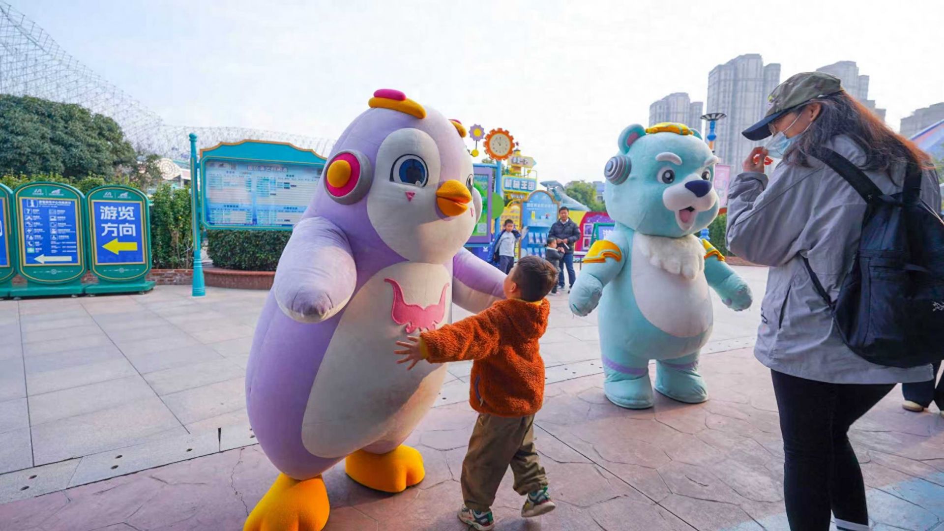 活動(dòng)開始,極地家族IP人偶在園區(qū)主入口迎接游客,用“愛的抱抱”給游客傳遞第一份溫暖。不少家庭與年輕游客紛紛駐足互動(dòng),在擁抱中拉開感恩節(jié)游園的序幕,也為漸寒的江城冬日添上一抹溫馨色彩。