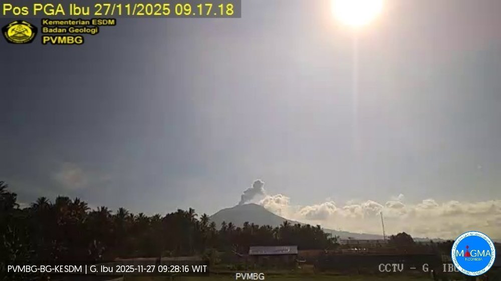 據(jù)印度尼西亞火山和地質(zhì)減災(zāi)中心消息,當(dāng)?shù)貢r(shí)間11月27日9時(shí)17分,印尼北馬魯古省伊布火山噴發(fā)?;鹕交抑呒s800米,噴發(fā)持續(xù)時(shí)間為57秒。(總臺(tái)記者 李琳)