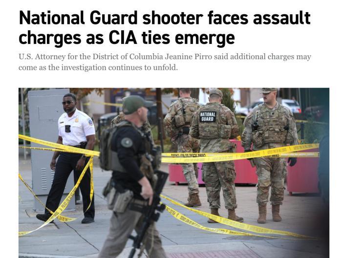 中新網(wǎng)11月28日電 綜合美媒報(bào)道,美國(guó)兩名國(guó)民警衛(wèi)隊(duì)成員26日在白宮附近遭到槍擊,嫌疑人隨后不久被抓獲。最新消息稱,嫌疑人是一名29歲的阿富汗男子,曾為美國(guó)中央情報(bào)局(CIA)工作。